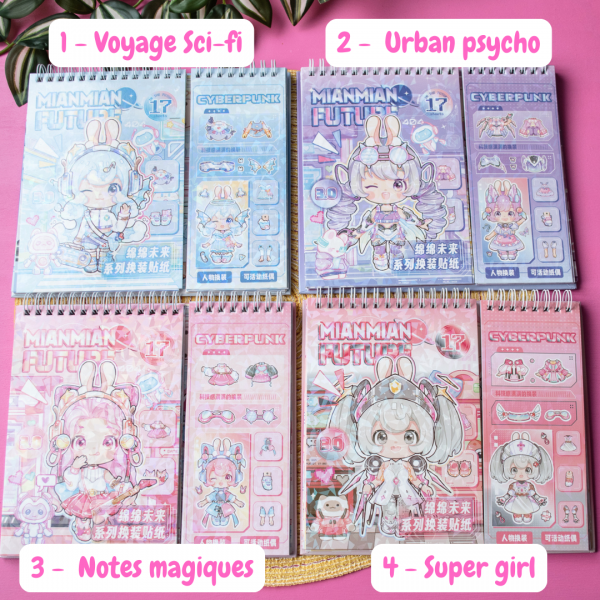 Chaque set contient 15 planches "personnage" et 15 planches de stickers avec les tenues et tous les acessoires.