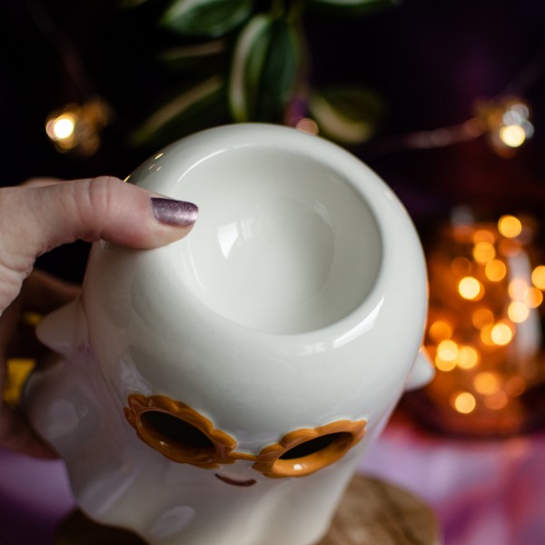 Avec son allure rétro, ce brûle-parfum en forme de fantôme apporte une touche originale à votre décoration. Sa silhouette spooky et son look groovy en font une pièce incontournable de la saison d'halloween !