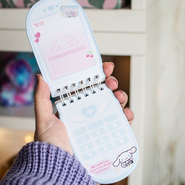 Un petit carnet en forme de téléphone à clapet ! Ah oui la vibe 90-2000 est bien là, mais version Kawaii ! Les feuilles sont délicatement imprimées avec des motifs rappelant un téléphone, et elles sont détachables !